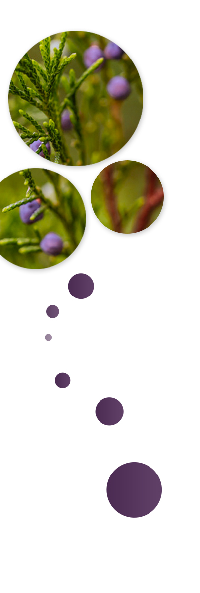 El aceite esencial de Baya de Enebro de dōTERRAMR se obtiene de la destilación por arrastre de vapor de las bayas. Su olor es balsámico, leñoso y especiado. Sus componentes químicos principales son el a-pineno, sabineno. Se dice que actúa como tónico cutáneo natural y tiene un efecto calmante y estabilizador. Usado el aceite mediante el difusor ayuda a limpiar y purificar el aire.5